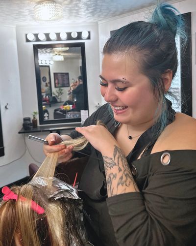 Cece specializes in vivid color, creative transformations, and alternative cuts, with a love for bold palettes, sharp shapes, and hair that tells a story. Think slime greens, ghosty lilacs, fire tones, and anything a little weird—in the best way.