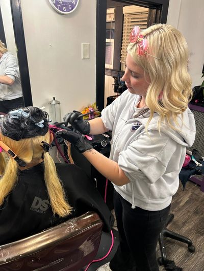 Outside of the salon, I love shopping, hanging out with friends, going to concerts, and watching TikTok. I’m also a big music fan, mostly country (Morgan Wallen, Luke Bryan, Ty Myers, Cody Johnson), and I have three cats—Fred, Murray, and Mavis—Fred is a 30-pound orange floof who keeps life entertaining! People often tell me they see two sides of me—bubbly and outgoing or relaxed and laid-back—but either way, I bring genuine energy wherever I go.